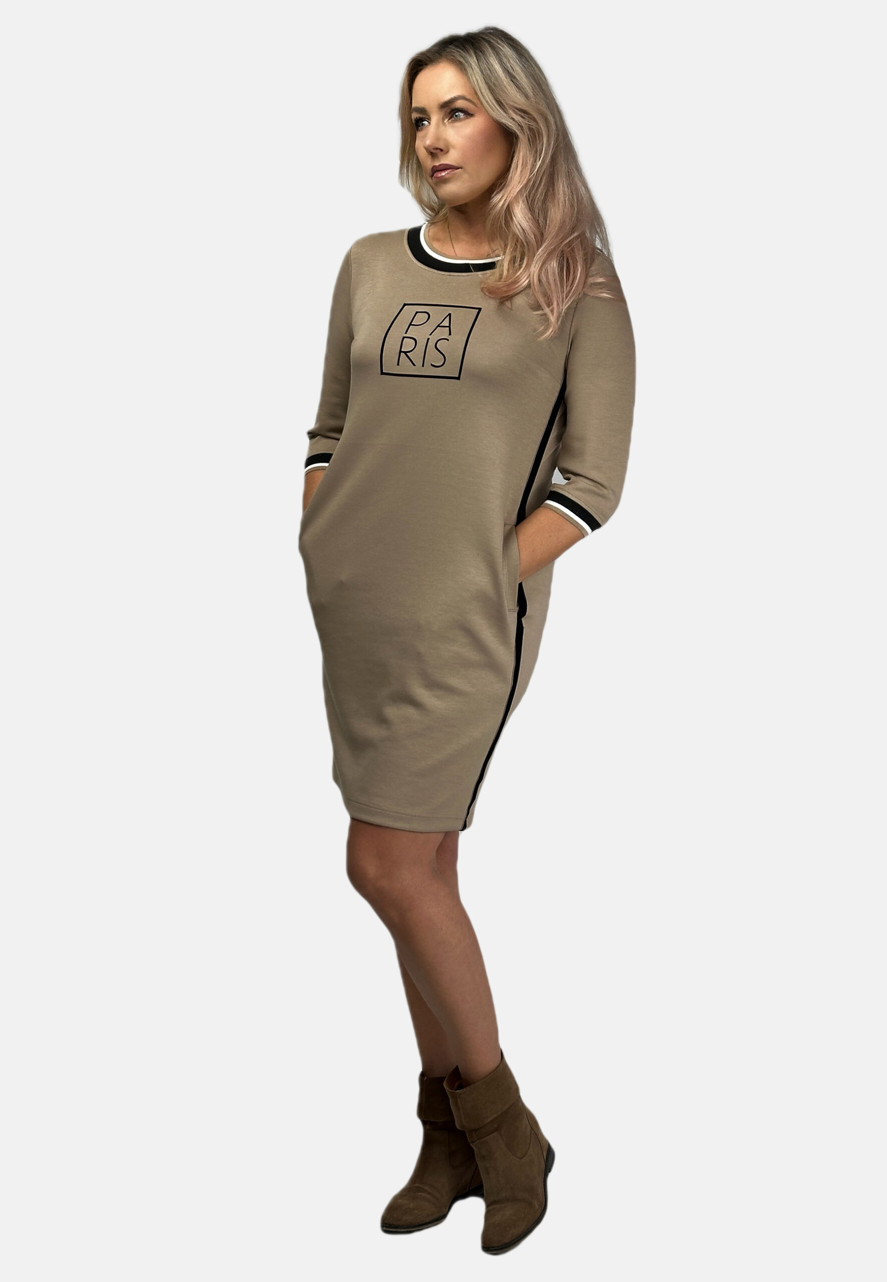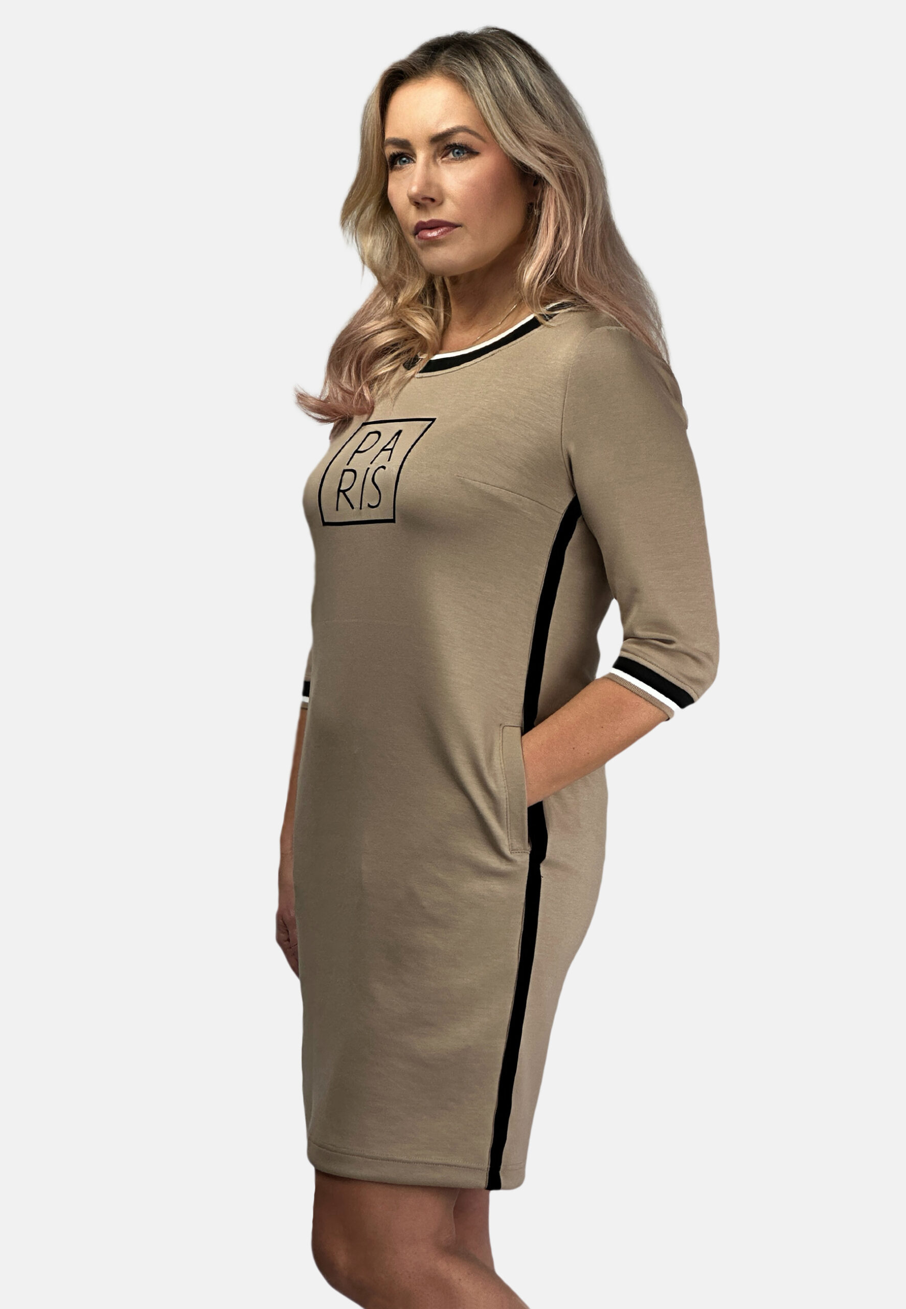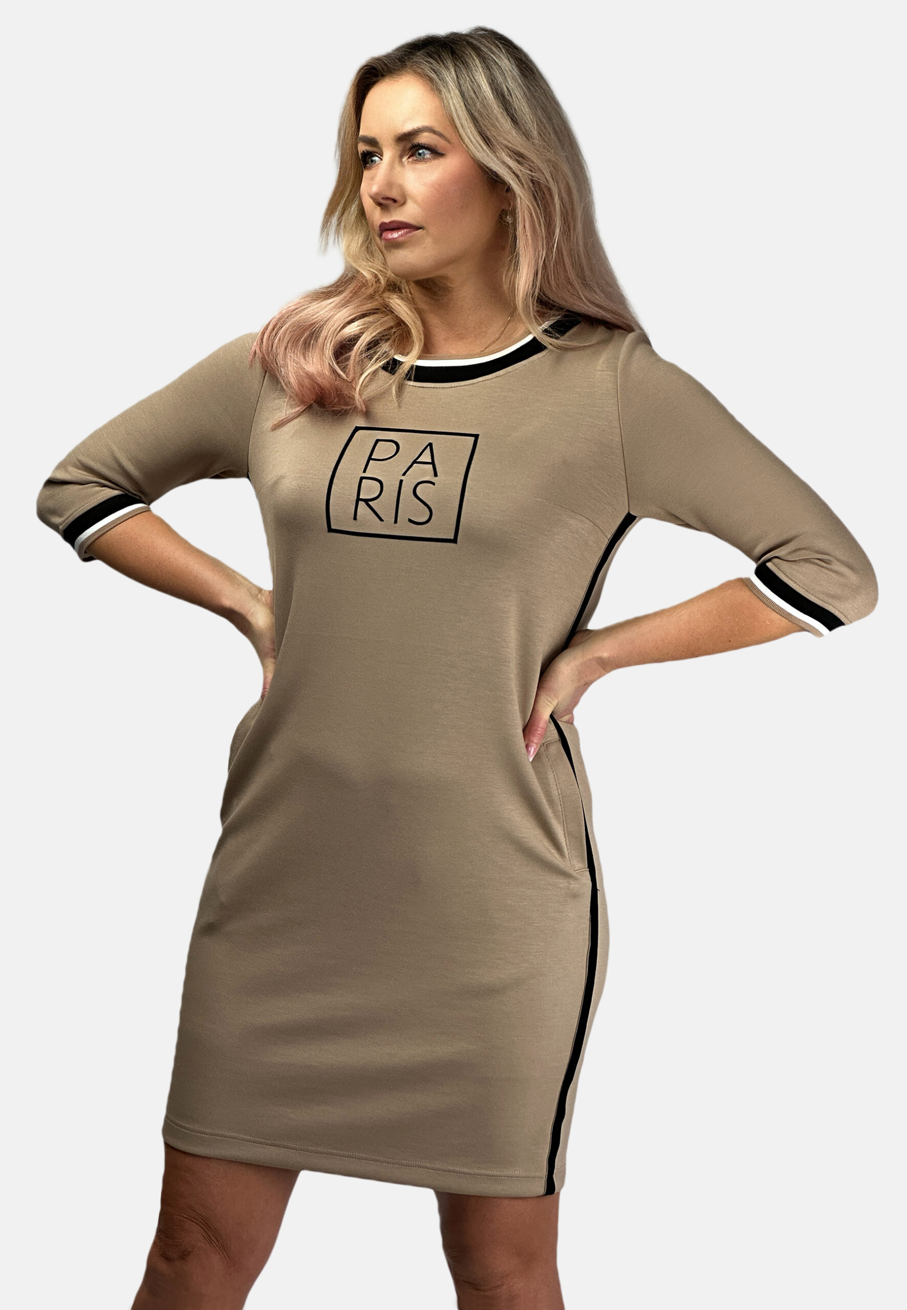 Sukienka z nadrukiem Paris kolor Beżowy